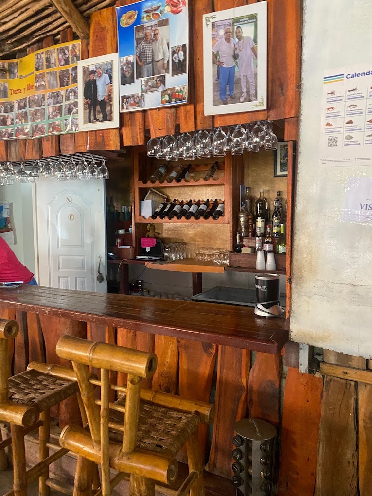 The atmosphere is super cozy, with a cabin-style, relaxed, calm, and close to the beach. Come and enjoy a unique culinary experience while you savor all those delights at Tierra y Mar Restaurant & Bar.